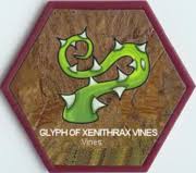 Si une figurine Énorme se déplace sur ce Glyphe, celui-ci est immédiatement retiré du champ de bataille et cette figurine peut continuer son mouvement normalement. Les figurines qui se trouvent sur ce glyphe lancent 1 dé d'attaque et 2 dés de défense en moins. Lorsqu'une figurine sur ce glyphe se déplace hors du glyphe, lancez un dé d'attaque. Si vous obtenez un crâne, cette figurine subit une blessure. Retirez ce glyphe du champ de bataille après qu'une figurine se soit retirée, ou à la fin du round si une figurine se trouve dessus. |