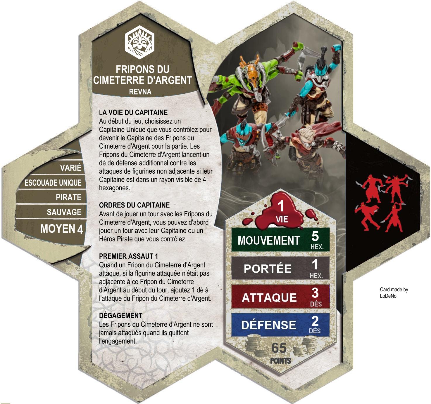 - LA VOIE DU CAPITAINE (=THE CAPTAIN'S WAY) : Les Knaves bénéficient d'un bonus de défense lorsqu'ils se situent dans un rayon de 4 hexagones de leur Capitaine désigné, parmi les figurines suivantes: