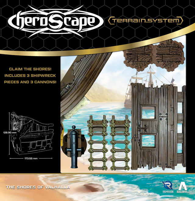 Nouvelle extension de terrain : une épave arborant Theracus en figure de proue, des hexagones de bois et des cannons. 85€